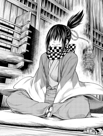 普段は目が隠れていて見えていませんが、実は三白眼であり、たまに目が見える場面があるのですが、その表情はまさに「鬼」のよう。(下にある画像を見てみると、より分かると思います。)生前の時に身寄りが無かった自分を拾ってくれた「近藤勇」のことを心から尊敬しており、常に彼と行動を共にします。